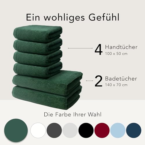 6 er Set Handtücher | 2 Badetücher Erwachsene 70×140 cm + 4 Handtücher 50×100 cm | Frottee Weich & Flauschig | 100% Baumwolle | Frottier Duschtuch Badetuch | Oeko-Tex | 500g/m² | Ôhm | Grün