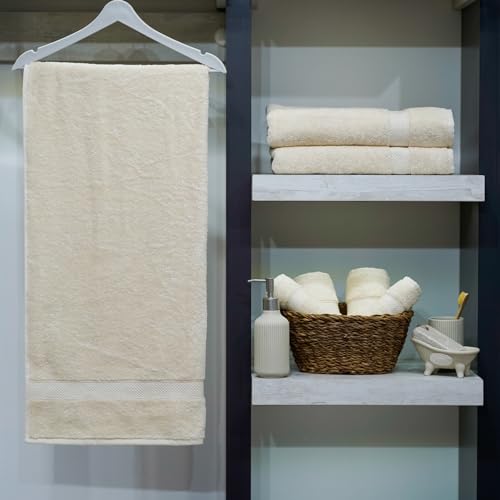 American Fluffy Towel 4-teiliges Badetuch-Set aus türkischer Baumwolle, enthält 4 übergroße Badetücher (68 x 137 cm) – sehr saugfähige Handtücher für Badezimmer, Hotel und Spa (4-teilig, cremefarben)