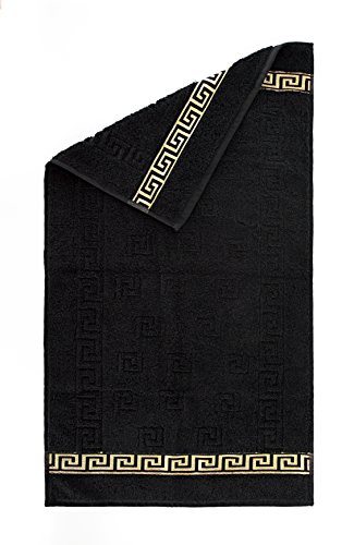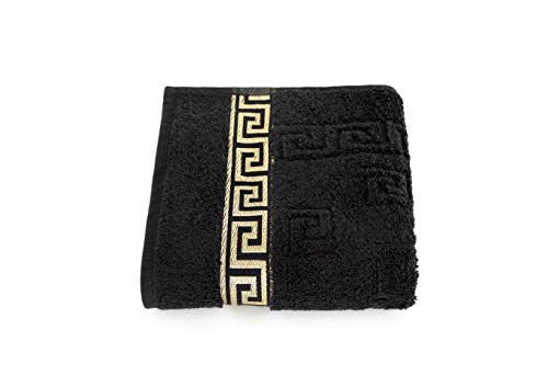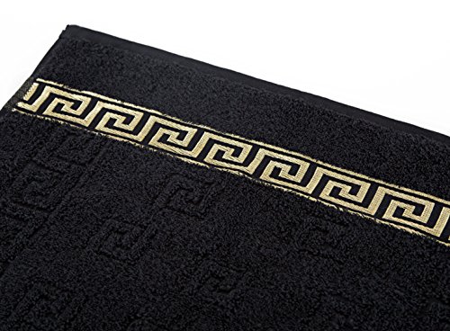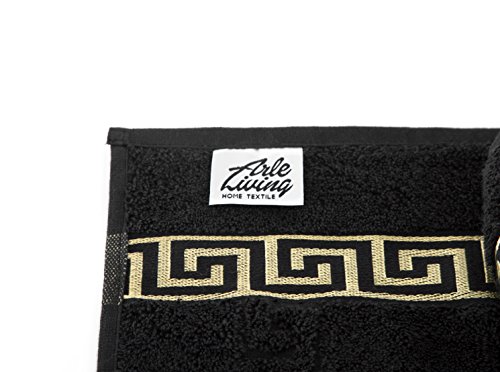 Arle-Living Luxus Medusa Handtuch 50×90 cm im 4er Pack/Jacquard Webung/Hochflor Frottee mit Medusa Flachprägung und Goldener Medusa Bordüre (schwarz/Black/Noir, 4er Pack Handtuch 50×90 cm)