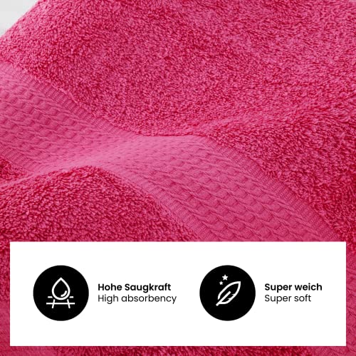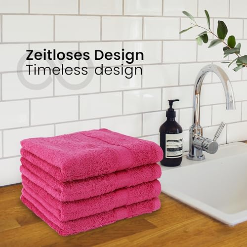 BaSaTex Frottier Handtücher Set aus weicher Baumwolle – 50×100 cm – 100% Baumwolle Öko-Tex Made in Green Zertifiziert | 4X Handtuch in Magenta Pink