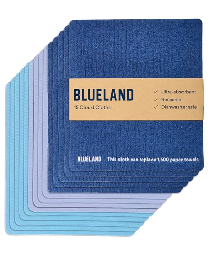BLUELAND Cloud Cloth – 15 Stück schwedische Geschirrtücher – wiederverwendbares, ultra-saugfähiges natürliches Küchenschwammtuch aus natürlicher Baumwolle und pflanzlicher Zellulose – für Küche,