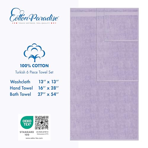 Cotton Paradise 6-teiliges Handtuch-Set, 100% türkische Baumwolle, weich, saugfähig, Handtücher für Badezimmer, 2 Badetücher, 2 Handtücher, 2 Waschlappen, lila Handtuch-Set