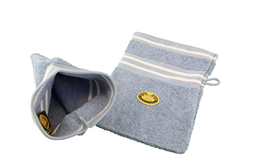 Sehr flauschiges Waschhandschuh-Set (16 x 21 cm) mit einer modernen und eleganten Borte in vollfarbig oder weißgrundig Blau zum Einseifen und Abwaschen von Gesicht und Körper, Passend für jedes moderne Badezimmer