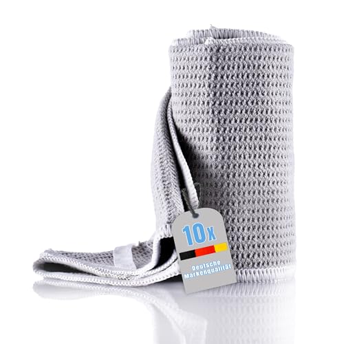 HELOME 10X Microfaser-Trockentücher | Geschirrtücher | Waffeltuch 38X60cm- Für Bad, Küche,Auto, Autoscheibe und Gewerbe. Streifenfreies Trocknen v. Fenstern, Duschkabinen, Gläsern, Besteck u. Geschirr