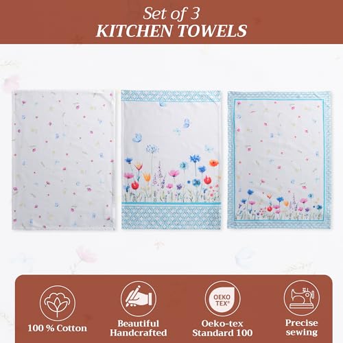 Maison d‘ Hermine Flower in The Field 100% Baumwolle Set von 3 Multi-Purpose Küchenhandtuch | Bar Handtücher | Frühling/Sommer (50 cm X 70 cm)