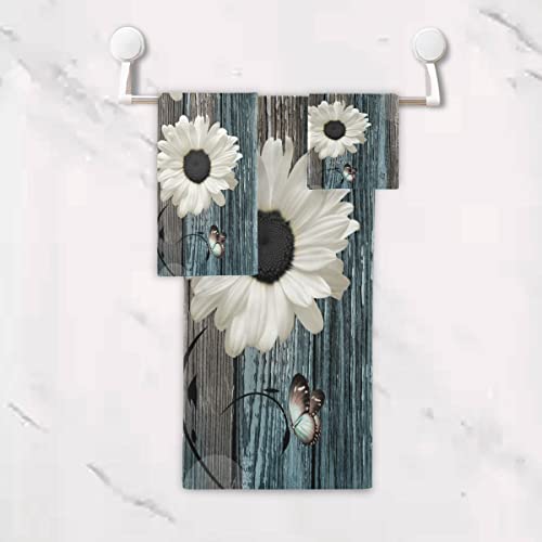Handtuch-Set beinhaltet: 1 großes Badetuch mit den Maßen 152,4 x 76,2 cm, 1 Handtuch (71,1 x 40,6 cm), 1 Waschlappen (33 x 33 cm). Das 3-teilige rustikale Gänseblümchen-Handtuch-Set ist sowohl funktional als auch verwandeln Ihr Badezimmer in ein Spa-ähnliches Aussehen und Sentiment.