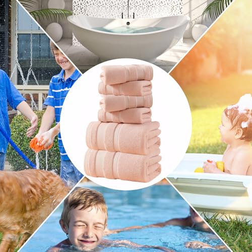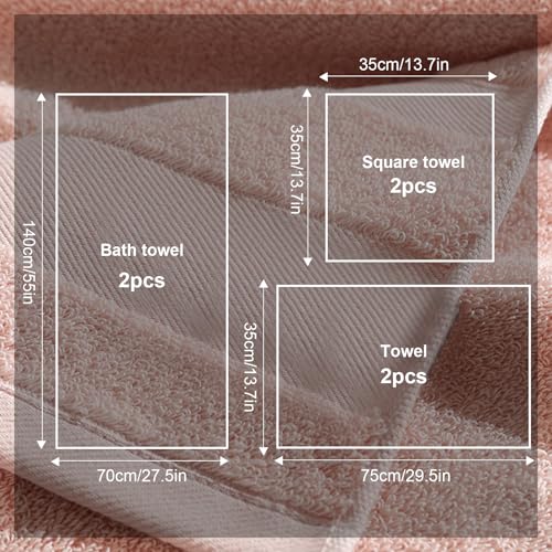 6-teiliges Badezimmer-Handtuch-Set: enthält 2 Badetücher (70 x 140 cm), 2 quadratische Handtücher (35 x 35 cm) und 2 Gesichtshandtücher (35 x 75 cm).