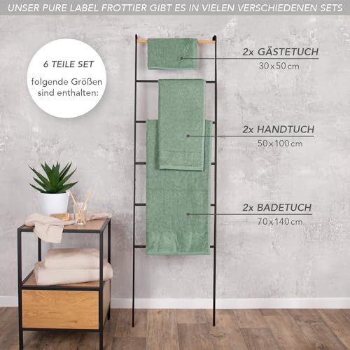 Pure Label 6-TLG. Handtücher Set mit Aufhängeschlaufen aus 100% Baumwolle, saugstark und weich – 2X Badetuch (70×140 cm) 2X Handtuch (50x100cm) 2X Gästetuch (30×50 cm), Grün