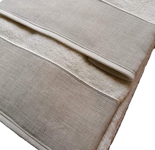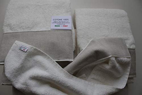 RICAMI FIORENTINI BALDI Handtuch-Set aus 100 % Baumwoll-Frottee, 420 g/m², mit Volant aus Leinen, 5 Stück: 2 Gesicht + 2…